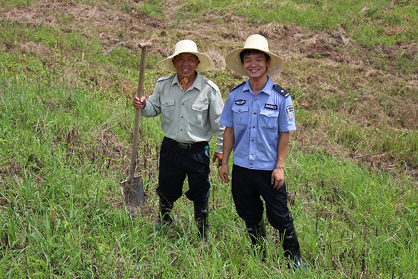 “上阵父子兵”(八监区责任段,2016年新入警的22岁小伙黄雪松和他的父亲。)