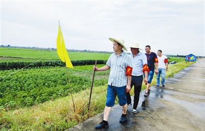 7月10日,九江县国土资源局值守干部在该县新洲垦殖场一分场,对堤坝进行拉网式巡查。通讯员 黄光荣摄